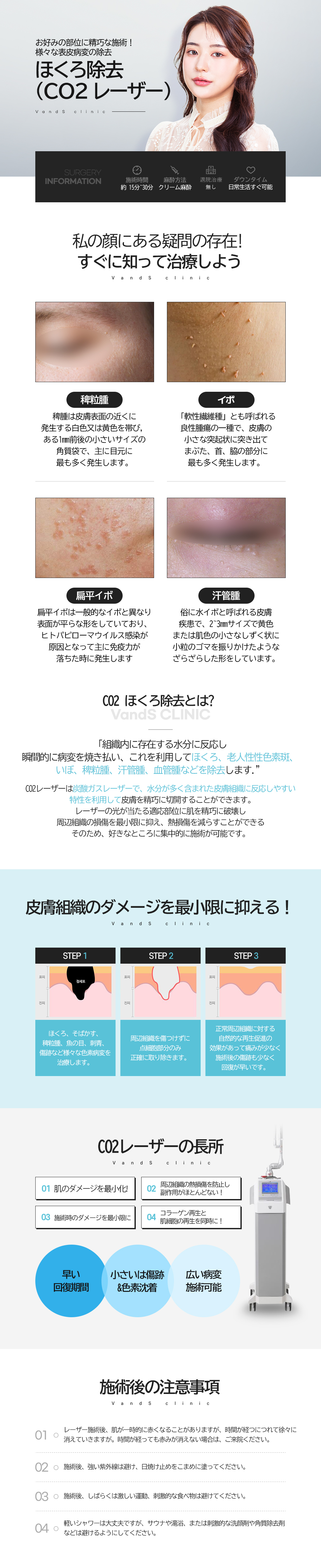 肌のダメージを軽減した、ホクロ、稗粒腫、イボ、汗管腫除去