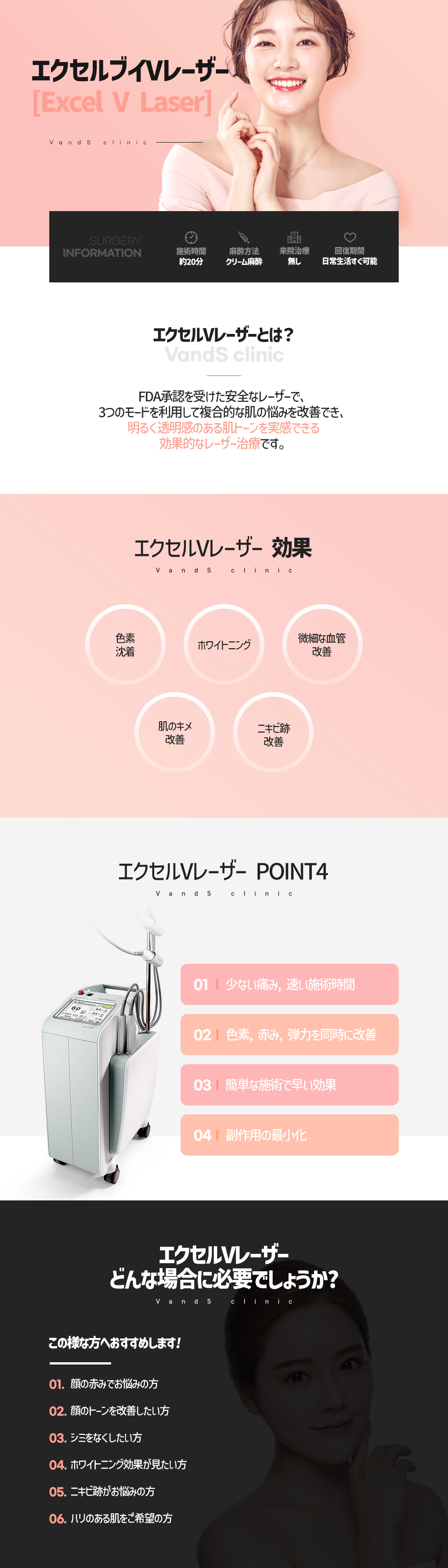 目立つ血管、色素、シワをより早く簡単に改善できるレーザーで、様々な肌トラブルに適用できます。